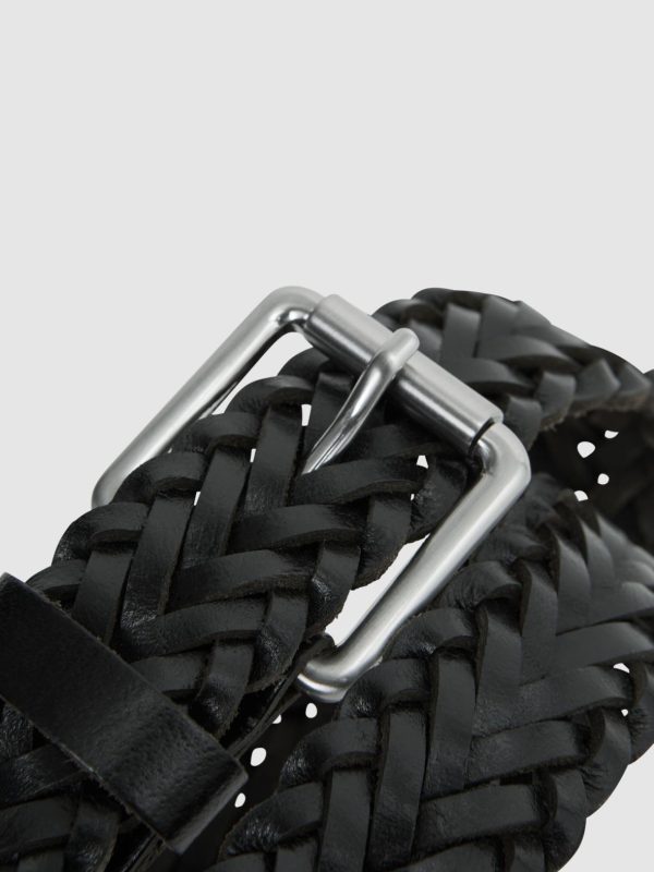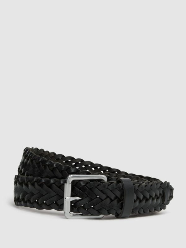 Add a premium edge to your looks with the Carlton, woven from leather in a black shade. Adjustable Leather Woven The model is wearing a size 32.,