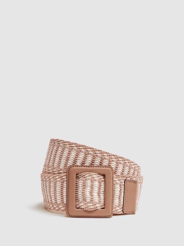 Complete your getaway edit with the neutral Daisy belt. It’s crafted from raffia, which lends a seasonal touch. An oversized buckle is added for a bold look. Layover flared and fitted garments for a contemporary edge.