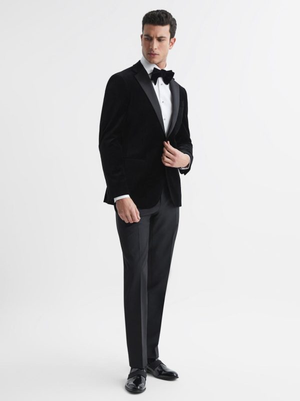 Reiss Blazers | Men Ace Single Breasted Velvet Blazer Black