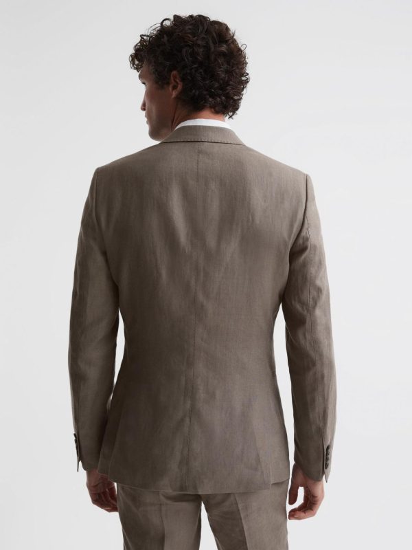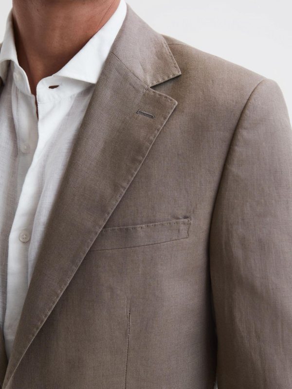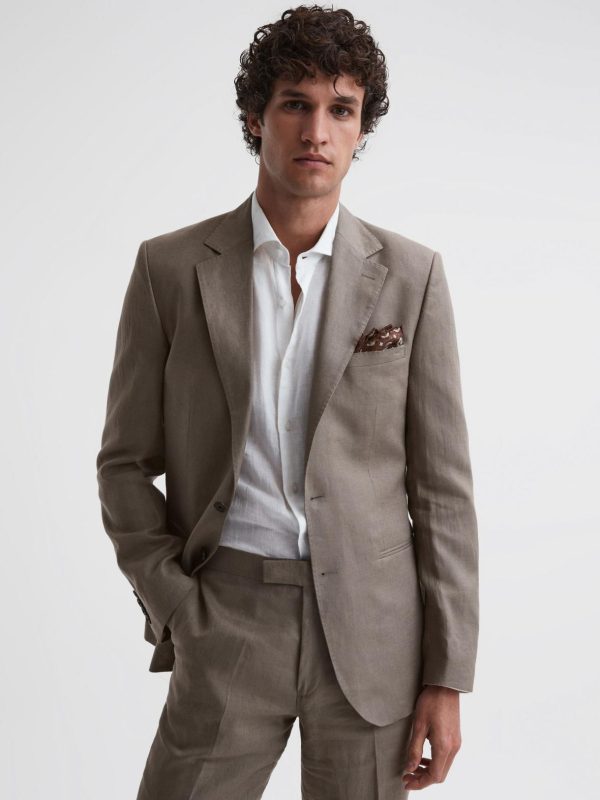 Give your suit collection a breezy update with the sage Kin, crafted from 100% linen for lightweight, comfortable wear. This blazer remains traditional with notch lapels and a three-pocket layout whilst the intricate stitch detailing and updated fabrication lend modernity. Style with the coordinating trousers then add a shirt and leather shoes for an effortlessly cool edit.