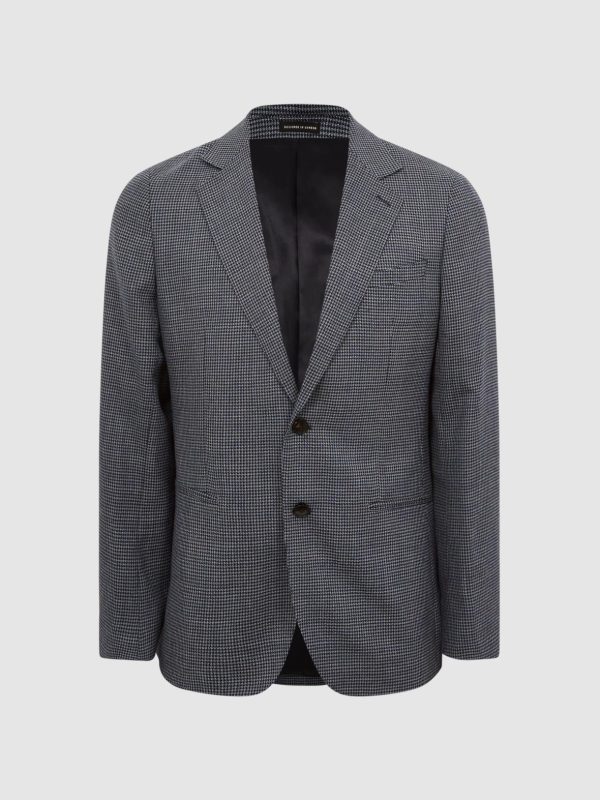 The navy Leadenhall single-breasted blazer is crafted in a dogtooth design, adding a contemporary flair to your workwear edit. It’s fitted with jetted pockets and features double vents for a classic, tailored look. Style with the coordinating dogtooth trousers.