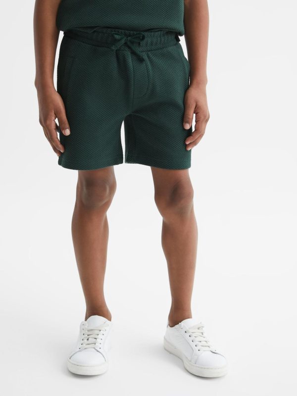 Update his loungewear edits with the emerald slim-fitting Robin shorts in emerald. The textured fabrication lends itself to season-spanning comfort. An elasticated, drawstring waistband and pockets offer practicality. Curate a weekend edit with the coordinating shirt.