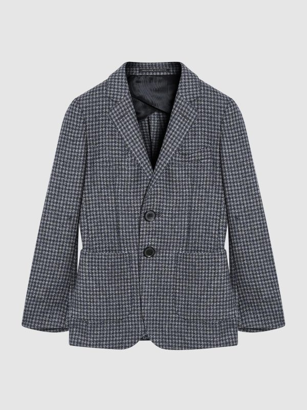 The Progress blazer is patterned in classic puppytooth for a heritage feel. Its tailored to a single-breasted front with notch lapels, welt pockets and a double vent. Wear it with a shirt or roll neck jumper for classic REISS style.