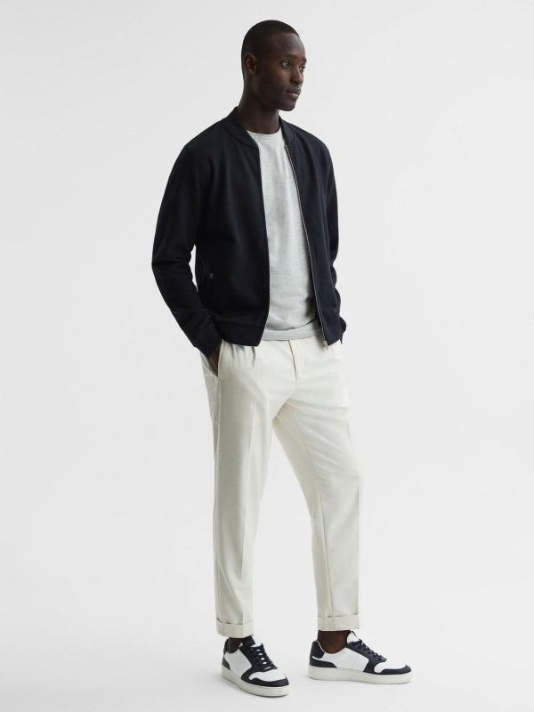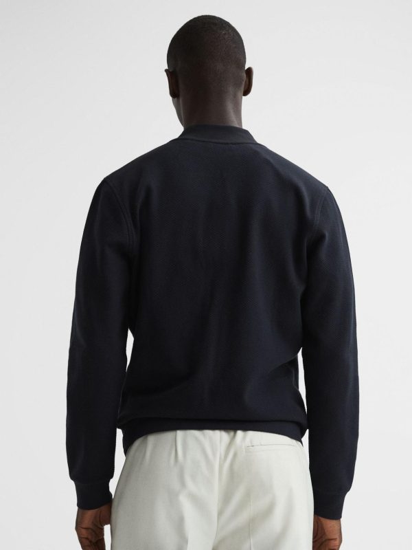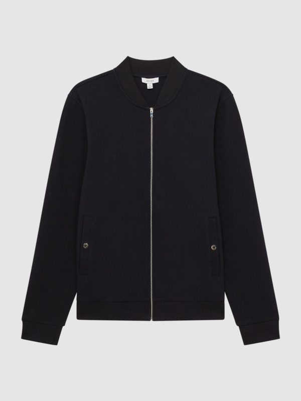 The navy Bolton jacket is a modern style crafted from a cotton blend with a textured finish. Pockets are added for everyday functionality. Silver-tone hardware refines the look. Wear with a T-shirt and casual trousers on off-duty days, or to lend a laidback mood to office styling.