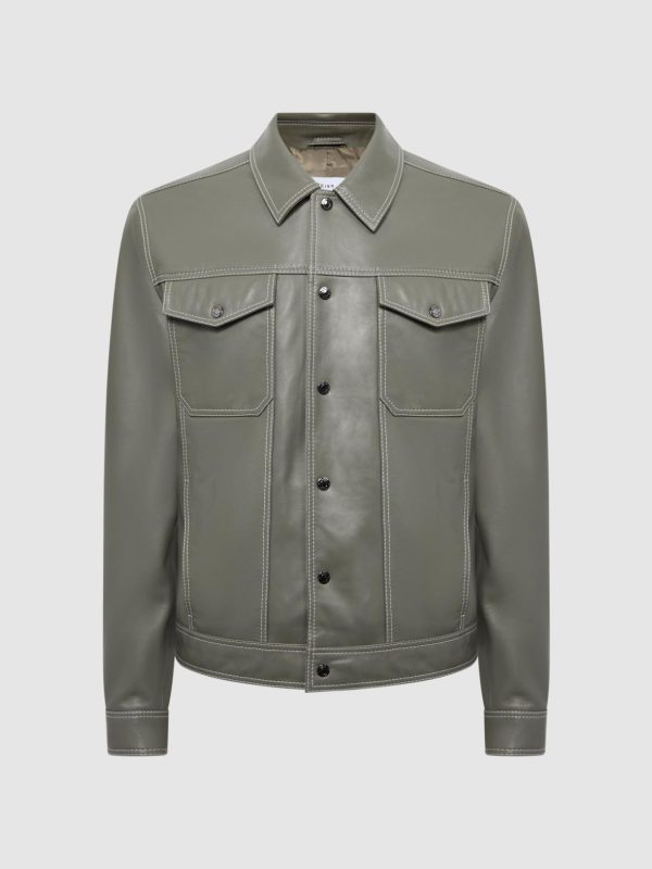 Add an edge to off-duty dressing with the Gisborne jacket in sage. It’s crafted from 100% leather and cut in a slim-fit silhouette. Flap pockets are added to the chest for functionality, whilst contrast stitching modernises the look. Layer over a plain T-shirt and wear with chinos for a sleek edit.