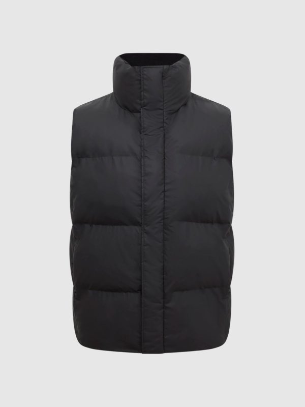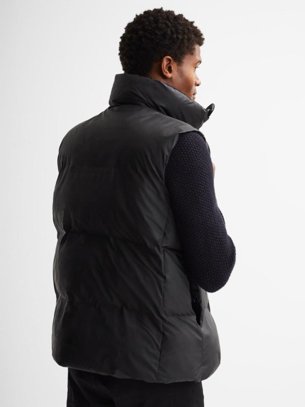The Boxy Puffer Vest is a unisex winter vest with an array of functional features. It’s waterproof and windproof with an insulated fleece-lined stand-up collar and side pockets for added comfort and protection. This style features featherless technology from Ecodown® by Thermore®, an advanced recycled insulation designed to be supremely warm yet lightweight. Coated in Rains’ signature fabric, this vest will ensure extra warmth in the cooler months. Add this to your Reiss looks for ultimate winter-ready attire.