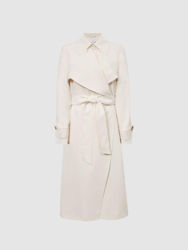Inspired by a traditional trench silhouette, the white Eden coat lends a heritage feel to your outerwear rotation. It’s fitted with a waist belt and pockets for functionality. Mottled buttons are featured on the front and the cuffs, adding understated style to this wardrobe staple. Layer over your cool weather looks for a quintessentially-Reiss finishing touch.