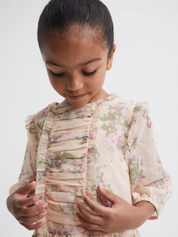 Add a sophisticated element to her wardrobe with the Amber dress, designed in a delicate floral print. It s crafted in a light and comfortable chiffon fabrication, cut to a relaxed fit. The amber features ruched detailing to the front and elasticated 3/4 length sleeves. Pair it with sandals for an elevated take on weekend dressing.