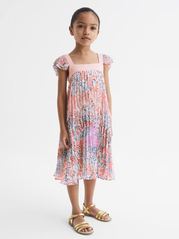Intricate design elements create the pink Aster dress; a knife-pleated fabrication is accented with lace trims for a refined party look. A square neckline is featured along with cut-outs to the reverse, for a unique look. Style this dainty gown with her favourite sandals to get special-occasion ready.