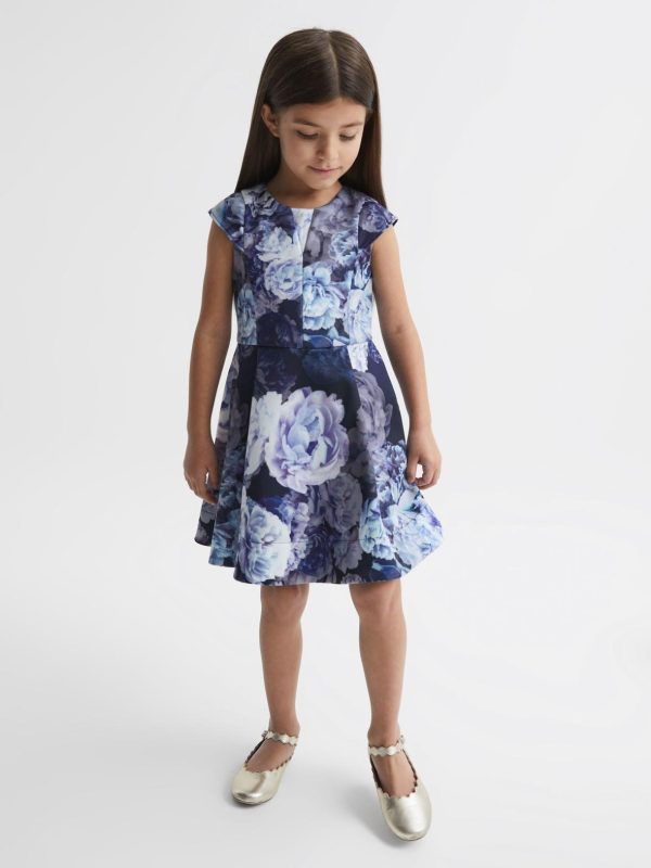 Update her special occasion selection with the Keri dress. It’s crafted from a blue floral printed fabrication and cut with short puff sleeves for a charming note. The silhouette is cinched at the waist then falls naturally into a full-bodied skirt. Pair with her favourite sandals to complete the look.