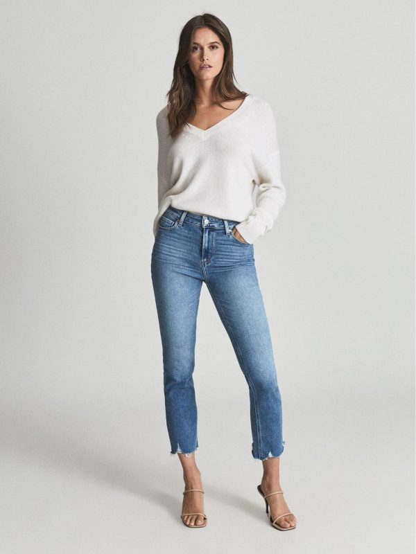 PAIGE applies fabric technology, expert fit know-how and a Los Angeles style sensibility to create unique jeans. Cindy is PAIGE’s supermodel jean, cut to a high-rise slim fit, lean through the leg that finishes above the ankle. This pair comes in a light wash with mixed metal hardware and subtle distressing for a well-worn look. Cut from PAIGE’s ultra-stretch denim, this style has the look of authentic vintage denim and remains comfortably stretchy and with shape recovery.