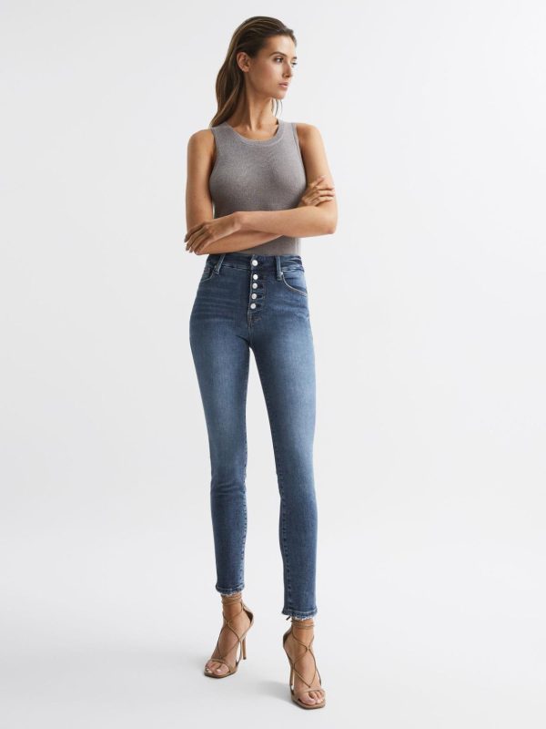 Good American, curated by Reiss, is a collection designed to work perfectly with your existing Reiss wardrobe. Innovative, solution-led denim and lifestyle garments champion inclusivity, enhance curves and represent body acceptance. By women, for women. The Good Legs Skinny Jeans are cut in a best-selling high-rise and skinny-fit silhouette. Its signature flat tummy technology, Super Stretch fabrication, and gap-proof waistband are engineered to sculpt and smooth the profile. An exposed-button closure and raw hem detailing modernise the look. Add to your Reiss rotation for a new everyday staple.