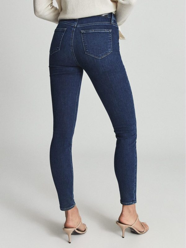 This style is PAIGE’s Margot – high-rise jeans cut to an ultra-skinny leg that’s accentuated by a soft stretch-denim construction, allowing them to comfortably hug the profile from seat to hem. A dark-blue wash, five-pocket layout and hardware maintain a pared-down aesthetic, allowing easy, versatile styling with seasonal favourites.