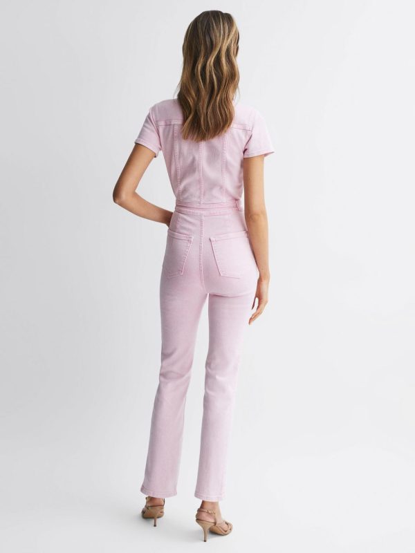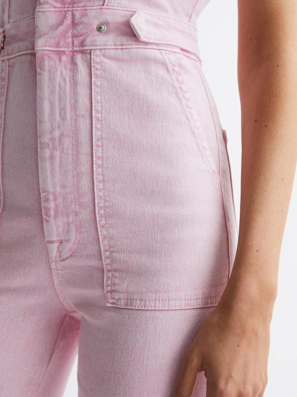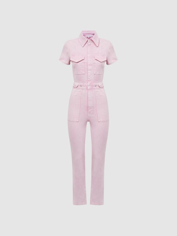 Good American, curated by Reiss, is a collection designed to work perfectly with your existing Reiss wardrobe. Innovative, solution-led denim and lifestyle garments champion inclusivity, enhance curves and represent body acceptance. By women, for women.?? The Fit for Success Jumpsuit in soft pink is cut from a cotton blend that allows slight stretch for comfort. A concealed front zip closure and a classic point collar feature on this jumpsuit. Multiple pockets are added to this piece, combining practicality with style. Press-stud side adjusters tailor the look. Select this jumpsuit under your favourite Reiss jacket for ultimate casual-cool appeal.
