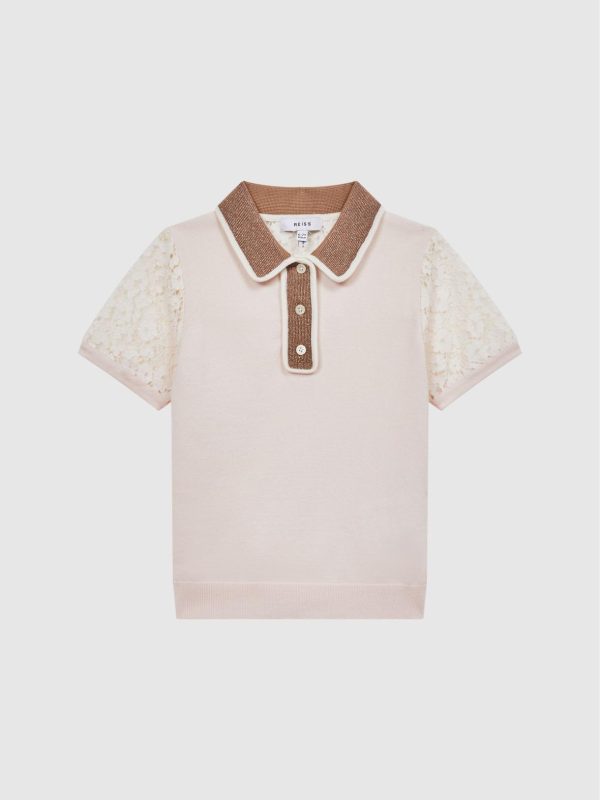 Reiss Knitwear | Children Eliza Lace Back Polo Pink