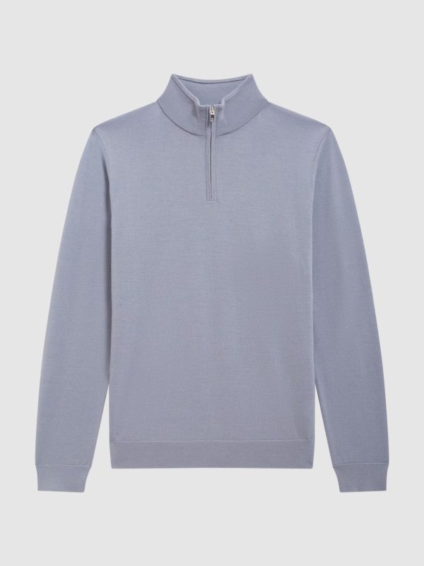Crafted from fine merino wool, the dove blue Blackhall zip-neck jumper offers a luxuriously soft feel and versatile wear. This style is complete with a ribbed hem and cuffs. Layer under a jacket and add tailored trousers for a contemporary office-ready outfit.