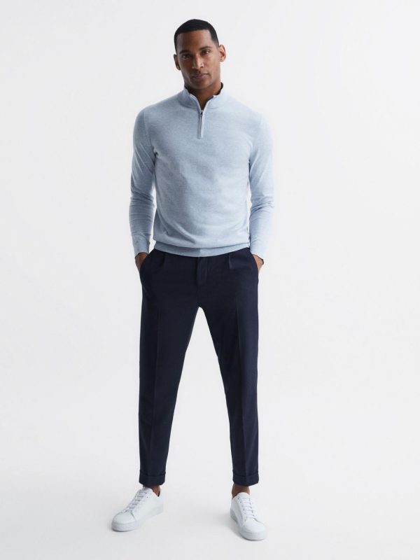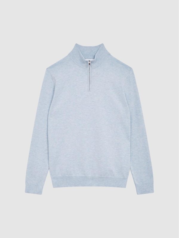 The Bond jumper in Sky Blue Melange is cut to a slim-fit silhouette, perfect for seasonal layering. It’s crafted with a funnel neckline and features a half-zip detail. Style this versatile piece with trousers and brogues just as easily as with jeans and trainers.