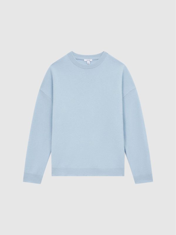 Embrace cool climates this season with the aquamarine Prague jumper. It’s fitted with ribbed trims for warmth and is spun from a merino wool blend for superior softness. Wear it with trousers and trainers, layered under a jacket for everyday luxe.