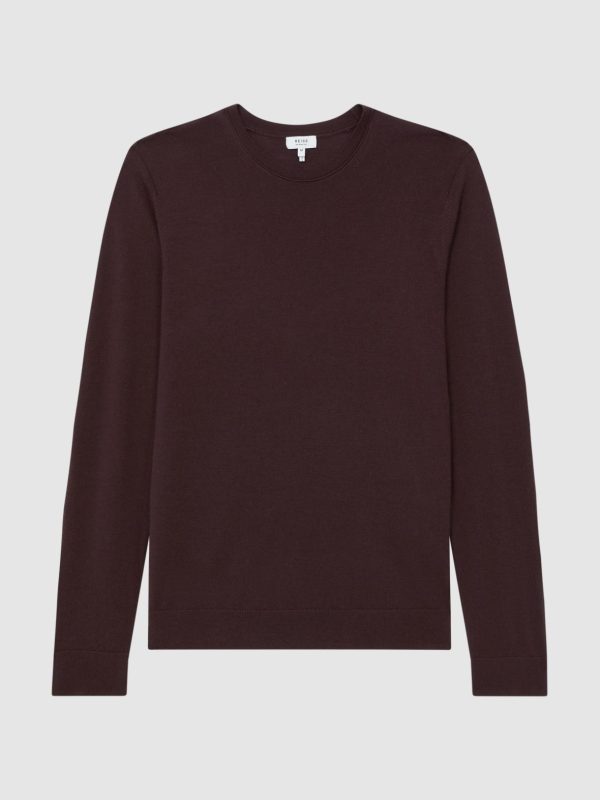 The Wessex crew-neck jumper is in Bordeaux knitted in soft merino wool. A versatile wardrobe essential that can be worn with smart tailoring or casual separates alike, try it with tapered trousers and leather trainers for a relaxed but polished look.