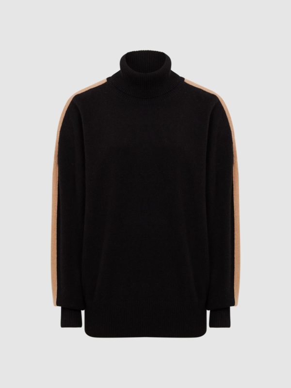 The Nova jumper is the ideal layering option during cold snaps. It’s spun from a warm wool blend with hints of cashmere. It features a snug roll neck and ribbed trims to help lock in warmth. Team it with trousers and trainers for casual-chic, or add heels for an elevated take on knitwear.