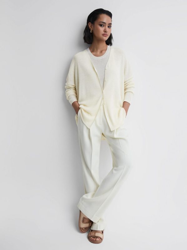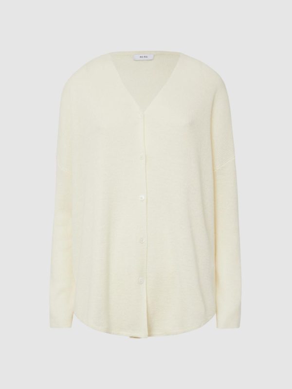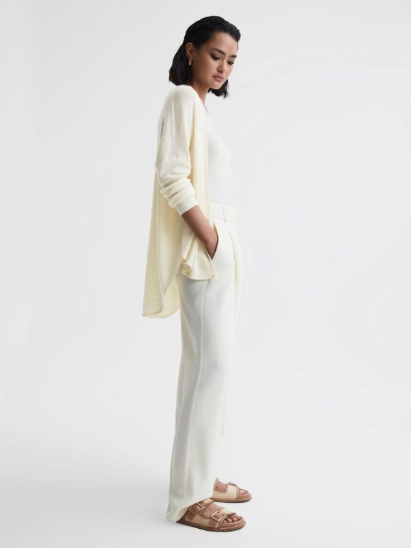 The Penny cardigan in cream is a luxe seasonal wardrobe addition, ideal for layering during cooler snaps or as a lightweight cover-up for warmer days. The dropped shoulder seams and curved hemline lend a relaxed outlook. Style with shorts for on-trend summer styling.