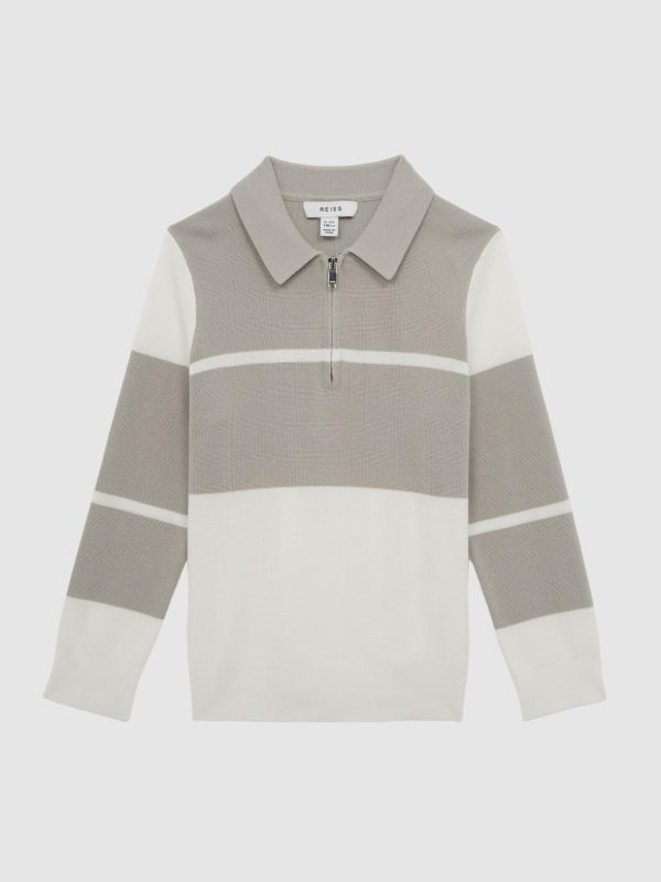 Reiss Polo Shirts | Children Tokyo Slim Fit Colourblock Half Zip Shirt Soft Grey/white