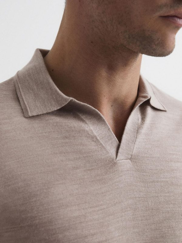 Crafted from merino wool for a soft handle and a luxurious finish, the wheat melange Duchie open-collar polo shirt has been woven with a lightly textured feel for subtle interest. Pair with chinos and trainers for sophisticated summer style.