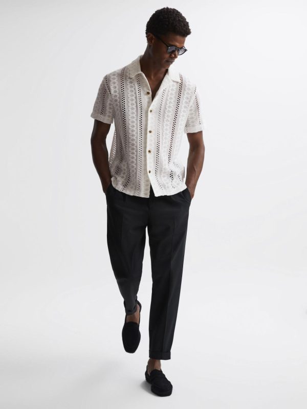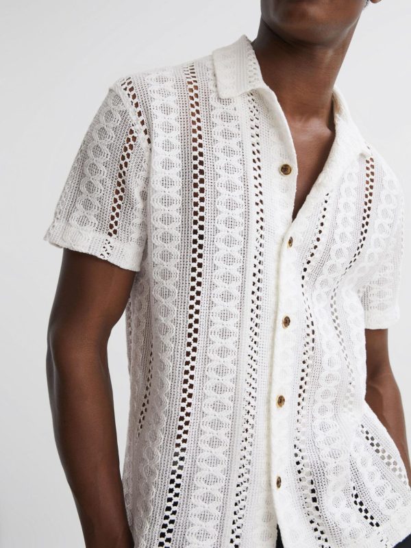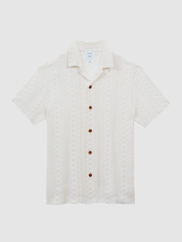 Reiss Polo Shirts | Men Palm Reiss | Ché Knitted Cuban Collar Button Through Shirt Ecru