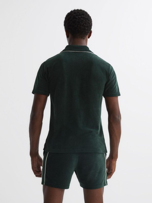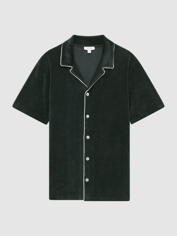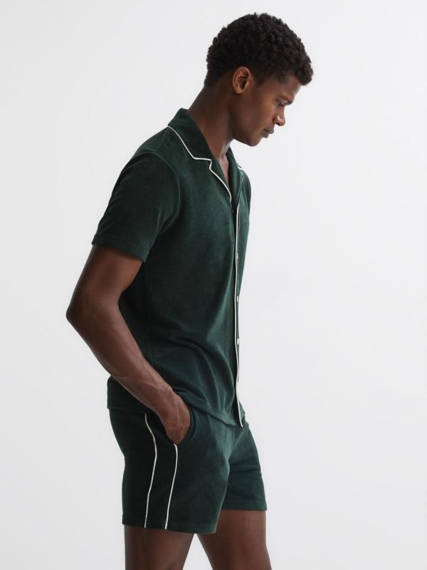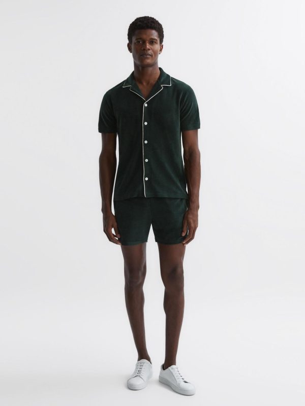 The dark green Defoe shirt energises your casualwear collection with textured appeal, thanks to its velour fabrication. It’s fitted with a Cuban collar and finished with a white trim, refining the look. Pair with the shorts for a sleek daytime edit.