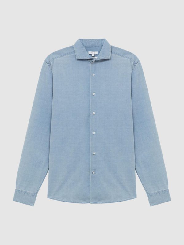 The Draper chambray shirt combines a regular-fit silhouette with a gently washed finish for an easy off-duty style. Wear layered over a white T-Shirt and pair with jeans or chinos for a pared-back weekend look.