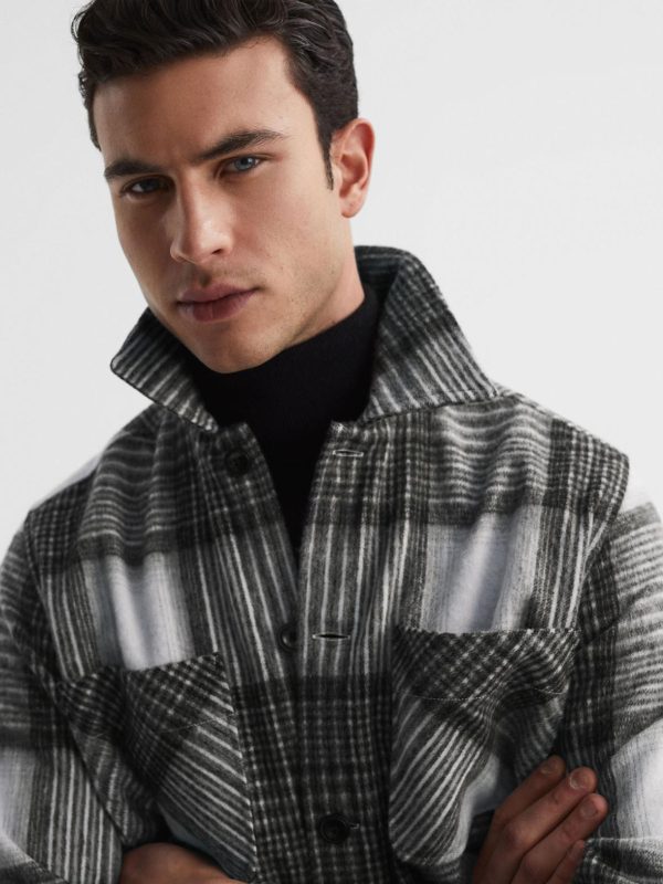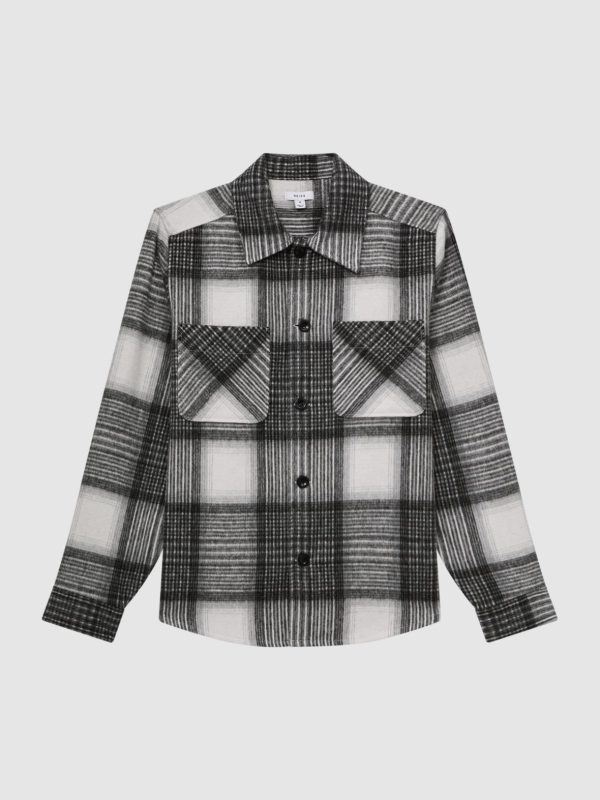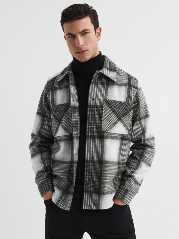 Reiss Shirts | Men Ohio Brushed Checked Overshirt Grey
