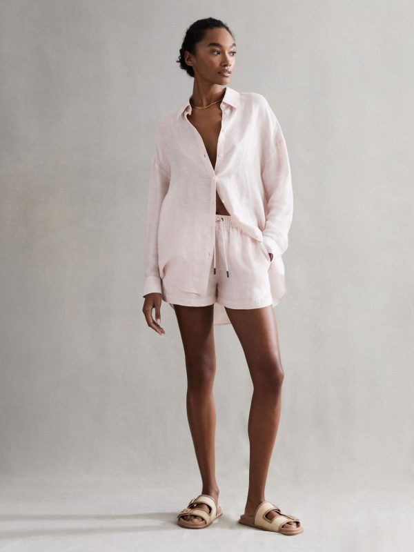The soft pink Cleo shorts are crafted from 100% linen, engineered for ultimate comfort and breathability, then garment-dyed for a soft touch and individual appearance. his pair are fitted with a drawstring waist for an adjustable wear. Style effortlessly with a T-shirt or linen button-through.