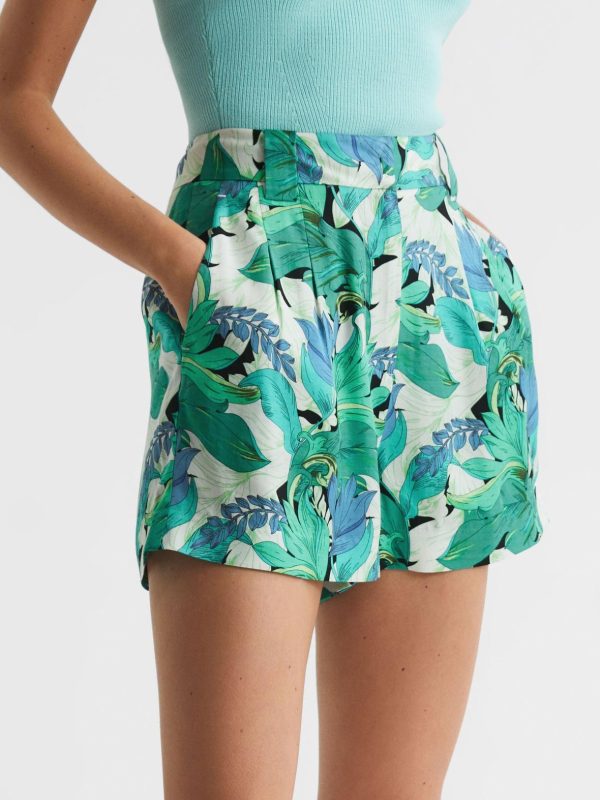 The aquamarine Dana shorts are designed in a lightweight, tropical print for seasonal appeal. They’re cut to sit mid-rise on the hips and hang loosely to an above-the-knee finish. Style with a tonal blazer and your favourite sandals to complete the look.