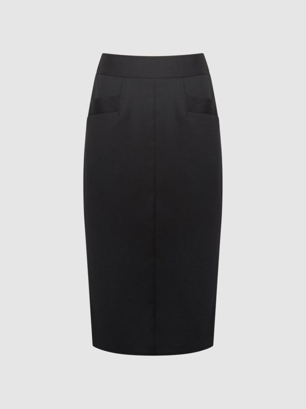 Upgrade your workwear options with the black Haisley skirt, blended with premium wool yarns for a soft and comfortable wear. This style is crafted in a pencil shape, a flattering style for the silhouette. Tuck in one of our elegant cami tops underneath the coordinating blazer for a sleek office edit.