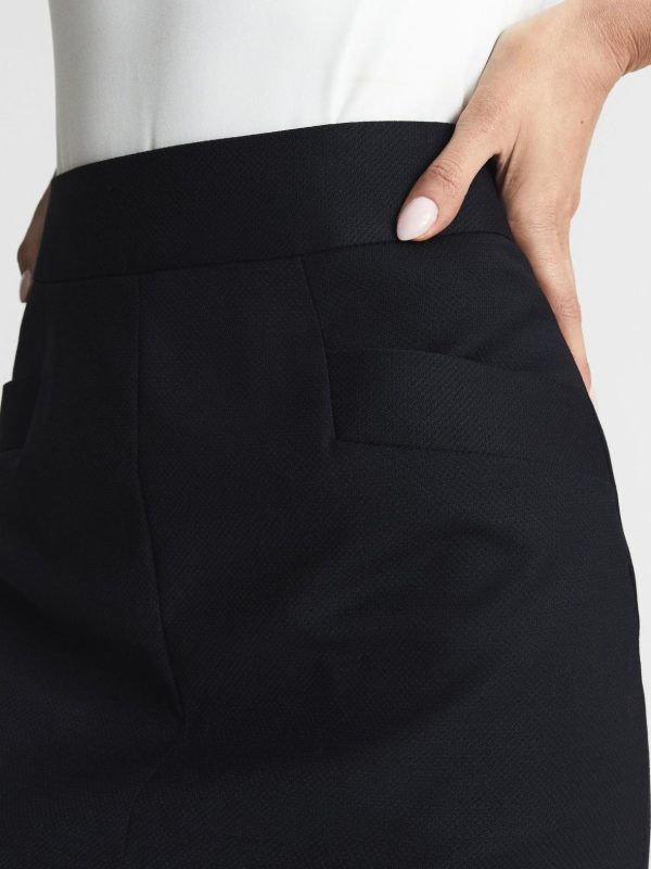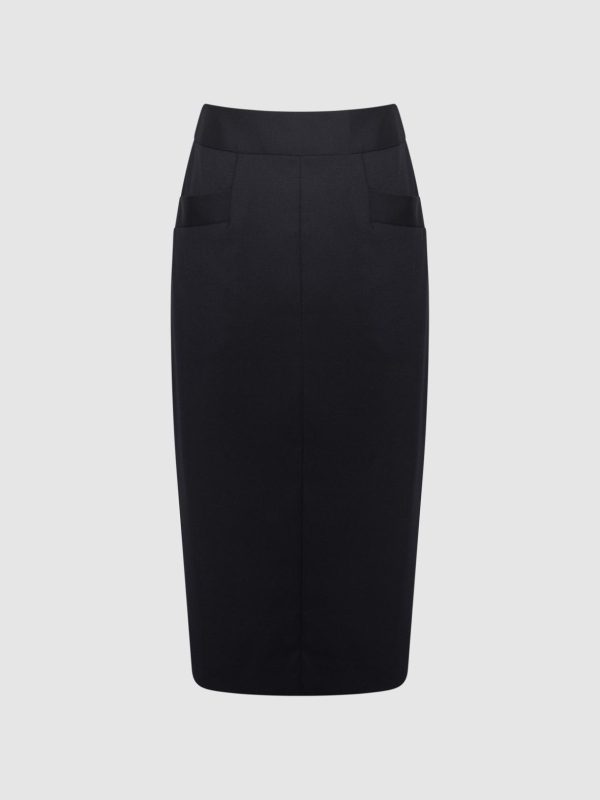 Upgrade your workwear options with the navy Haisley skirt, blended with premium wool yarns for a soft and comfortable wear. This style is crafted in a pencil shape, a flattering style for the silhouette. Tuck in one of our elegant cami tops underneath the coordinating blazer for a sleek office edit.
