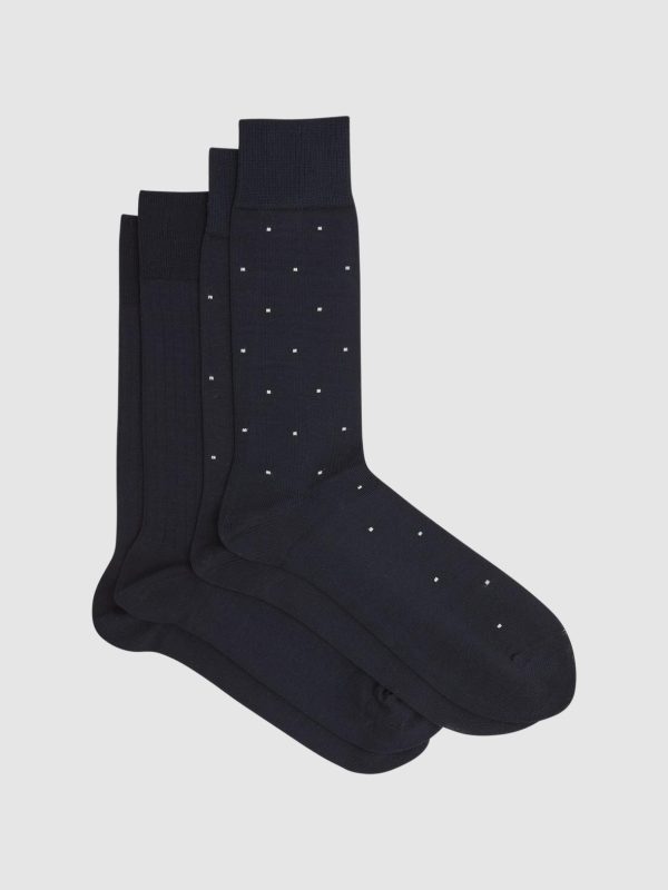 The Graham socks in navy have been crafted from a cotton-rich blend for maximum comfort and durability. This pair provides a subtle way to add patterns to your underwear collection.