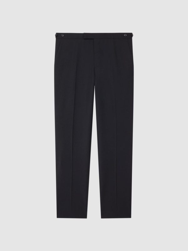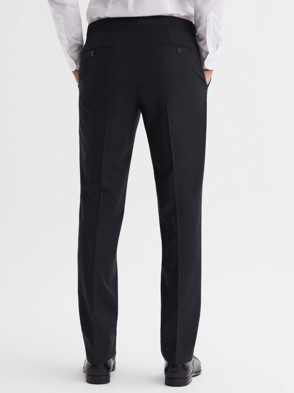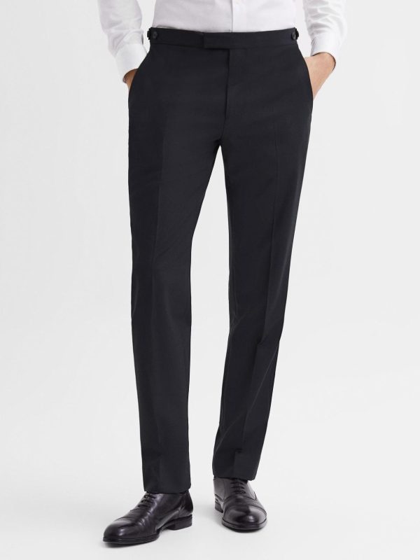 Crafted from a luxurious wool blend, the black Hope modern-fit trousers are the easiest route to tailored perfection. They boast a subtle stretch, helping to maintain the shape of the garment and increase comfort for the wearer. This piece is best styled with a shirt, the matching blazer and waistcoat for a polished boardroom look.
