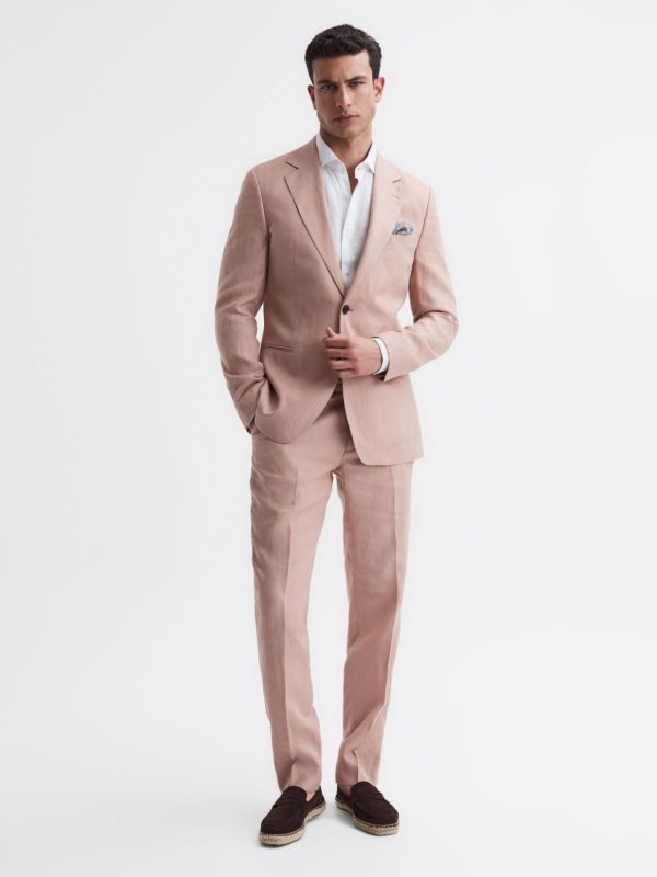 Give your suit collection a breezy update with the blush Kin, crafted from 100% linen for a lightweight, comfortable wear. This blazer remains traditional with notch lapels and a three-pocket layout whilst the intricate stitch detailing and updated fabrication lend modernity. Style with the coordinating trousers then add a shirt and leather shoes for an effortlessly cool edit.