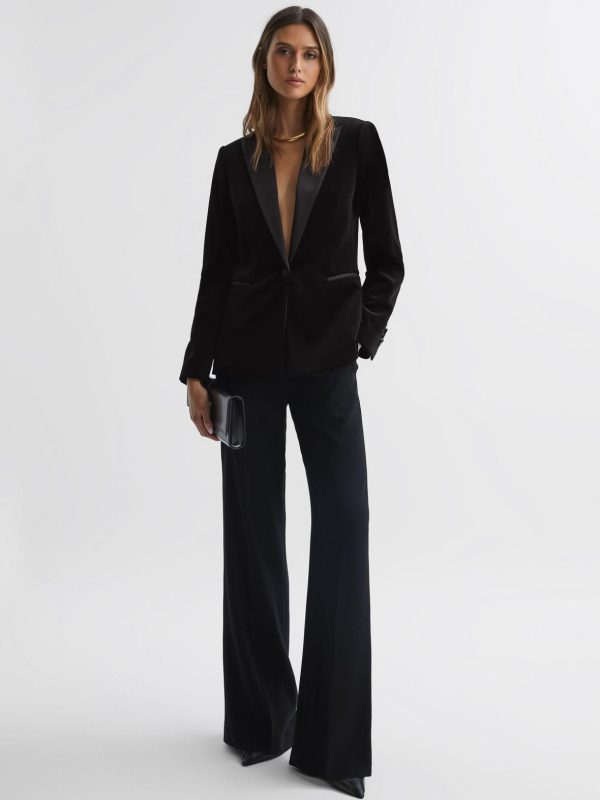 Reiss Suits & Tailoring | Women Opal Single Breasted Velvet Blazer Black