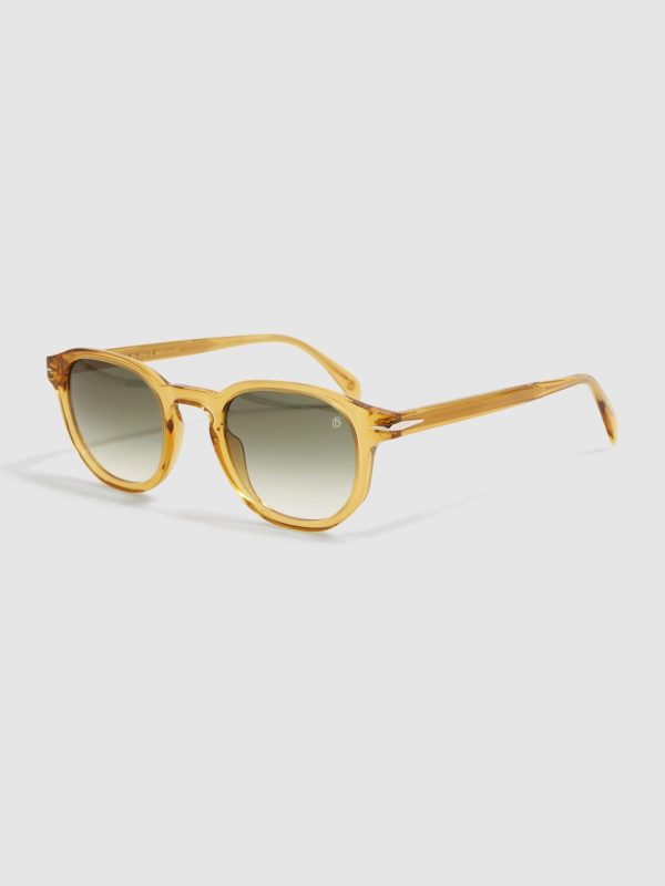 The DB 1007/S sunglasses are a staple pair to have in your warm-weather rotation. They’re a classic round shape rendered in a unique yellow shade for a contemporary wear. The brand’s signature DB monogram is added as a note of luxury. Choose these to complete your Reiss outfits.