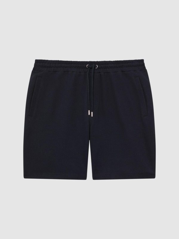 Update your loungewear edits with the navy Robin shorts. The textured, cotton-blend fabrication lends itself to season-spanning comfort. An elasticated, drawstring waistband and pockets offer practicality. Curate an off-duty edit with the coordinating jumper.