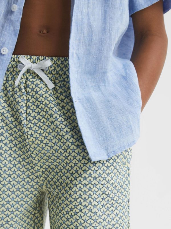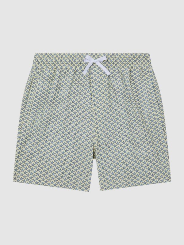 The Bay swim shorts, in a yellow starfish print, feature a drawstring waistband and are structured to a mid-level design. They’re universally functional and effortlessly cool. Wear poolside and in the water for easy and instant style.