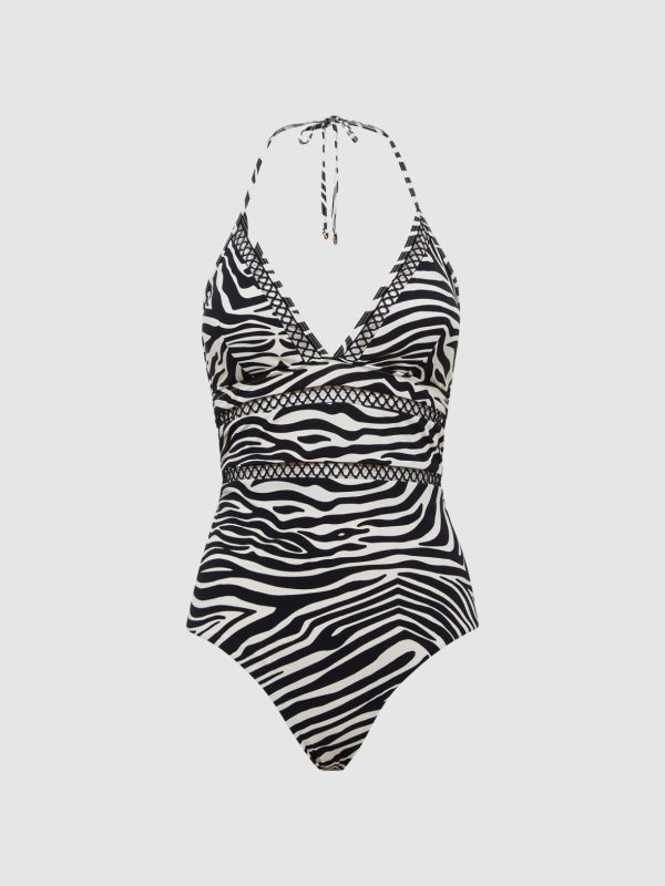 Add the Gia zebra print swimsuit to your summertime rotation. It’s designed with removable padding for a sculptured silhouette, and cut-out detailing is featured throughout for modern appeal. Wear it with oversized sunglasses and a woven hat for a stylish finish.