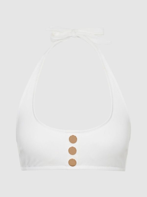 Reiss Swimwear | Women Iris Halter Bikini Top With Button Detail Seafoam
