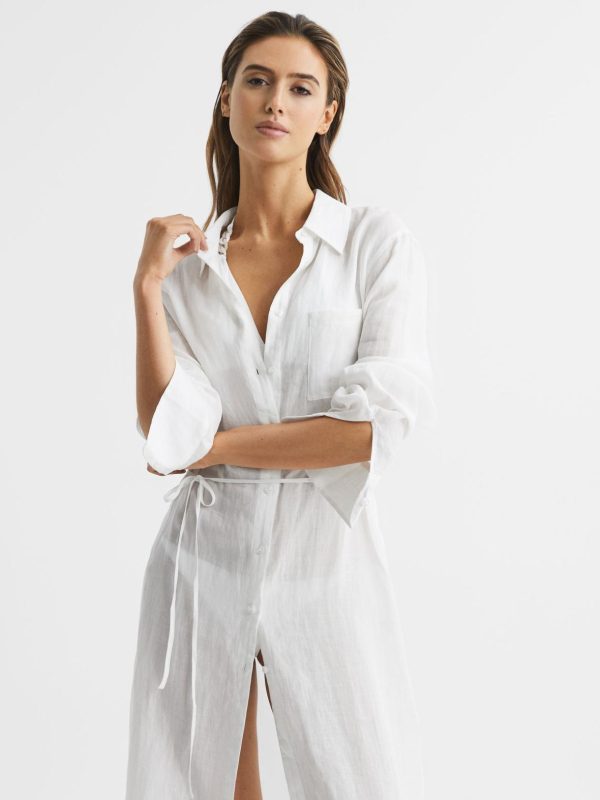 Choose the Keava midi dress as your resortwear staple for seasons to come. It’s crafted from a lightweight ramie fabrication that’s ideal for pool days and beach evenings. A side slip is added to the length and a waist belt is featured to customise the wear. Throw on over your favourite Reiss bikini for a laidback holiday edit. 100% ramie.