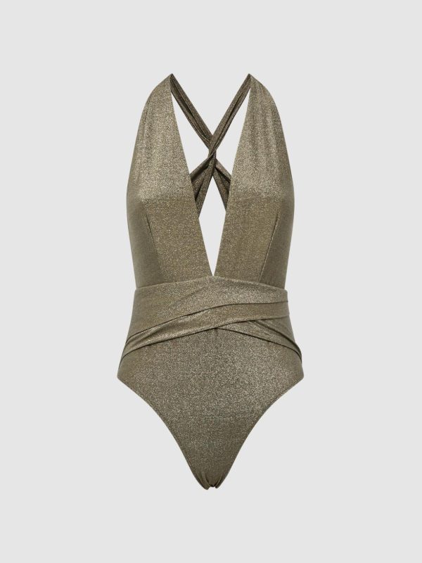 Reiss Swimwear | Women Leela Metallic Swimsuit Gold