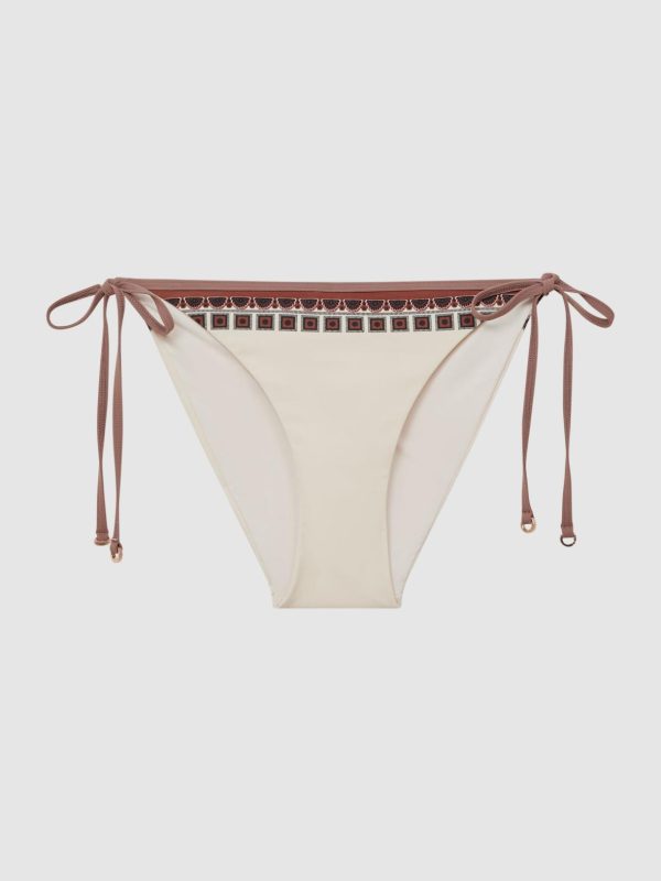 A modern, neutral agenda informs the Tina bikini bottoms. They’re fitted with side-tie fastenings for a customisable fit, and gold-tone hardware provides a luxe edge. Pair with the coordinating bikini top to complete the look.