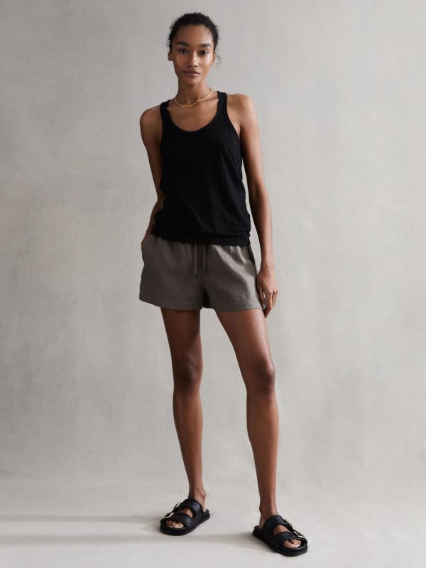 The black Taloulah vest is a fail-safe option for warm weather styling. It’s cut from linen into a sleeveless, crew-neck silhouette, making it a breathable base layer for casual, daytime plans. Or tap into a modern-office aesthetic by wearing under a formal shirt and pairing with jeans.