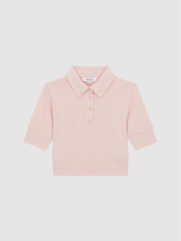 Choose the pink Eva polo shirt to add a preppy edge to her wardrobe. It’s crafted into a ribbed design for tactile appeal, whilst its cropped silhouette makes it the perfect match for high-waisted trousers. Pair with a printed element for a Reiss-approved look.
