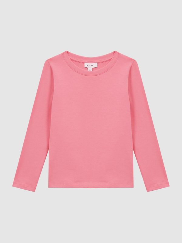 A wardrobe classic gets a pink update with the Mai. This long-sleeve, crew-neck shape lends itself to a range of styling possibilities. Choose as part of her off-duty repertoire by pairing with joggers and trainers, and layering under knitwear when the climate cools.